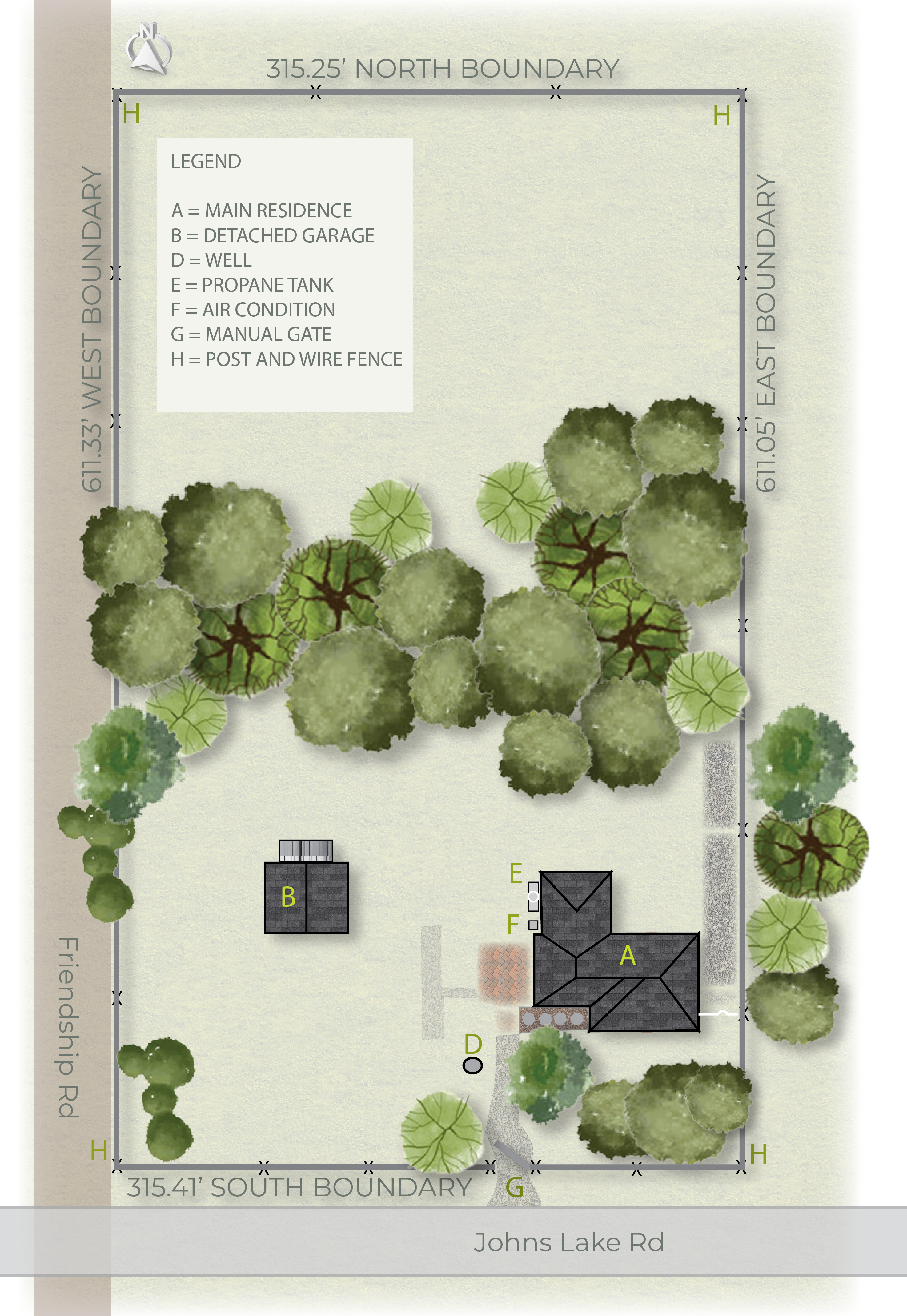 Step into the story of Postal Colony, a historic area along Johns Lake Rd where settlers once gathered at a postal station in the 1880s. This 4.09-acre retreat carries that legacy of connection and freedom—no HOA, zoned for horses, and fully fenced for your dreams.